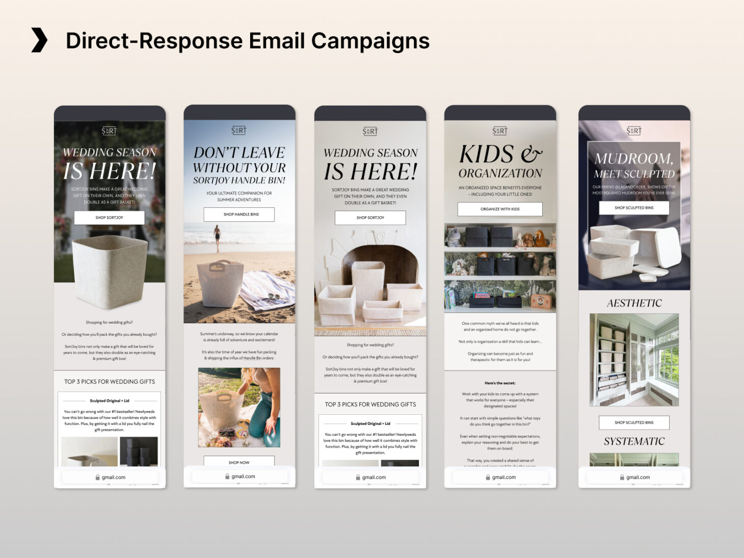 Goals of the project: Direct-Response Email Creatives: SortJoy E-commerce Growth. For SortJoy, I developed a series of high-performance email campaigns designed to drive repeat purchases and maximize customer lifetime value (LTV). Moving beyond basic design, I structured these assets using direct-response principles—focusing on clear visual hierarchy, "above-the-fold" CTAs, and mobile-optimized layouts. By aligning product storytelling with performance goals, these creatives served as a key driver in the brand's retention funnel, turning one-time buyers into loyal advocates.